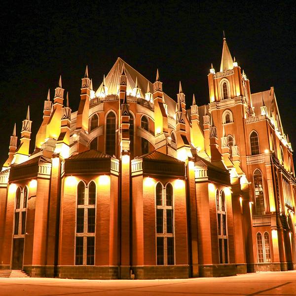 简朴、庄重、典雅的哥特式风格,集旅游观光、欧式婚礼等功能于一体的综合性场馆。