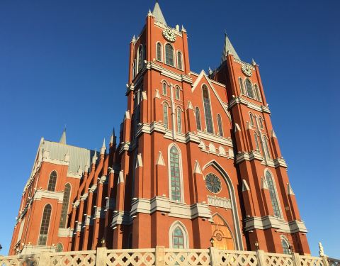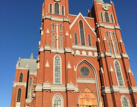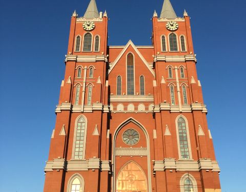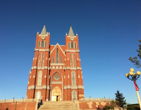 这也叫鹰山大教堂,应该是本地人举办婚礼的圣地吧,所以得名叫婚礼宫。因为婚礼宫处于城市高处这也叫鹰山大教堂,应该是本地人举办婚礼的圣地吧,所以得名叫婚礼宫。因为婚礼宫处于城市高处。可以俯览城市全貌。在满州里城区有公交车到山下,但是看完日落夜景回去就没车了。