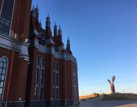 ...似教堂的建筑,不知道为什么叫婚礼宫,大多数是免费的,曾经有一段时间被承包,作为游览景点收门票了在一进市区的东山上,算是满洲里的至高点,可以向西远眺全市。从市区坐四路、一路等公交车可以到路口,然后步行登较平缓的平坦路面的山坡。其背面即东侧是标志性的振翅欲飞的鹰雕。 这是一个类似教堂的建筑,不知...在一进市区的东山上,算是满洲里的至高点,可以向西远眺全市。从市区坐四路、一路等公交车可以到路口,然后步行登较平缓的平坦路面的山坡。其背面即东侧是标志性的振翅欲飞的鹰雕。 这是一个类似教堂的建筑,不知道为什么叫婚礼宫,大多数是免费的,曾经有一段时间被承包,作为游览景点收门票了。冬天没有游人,天暖后门口内有卖俄货的。 展开