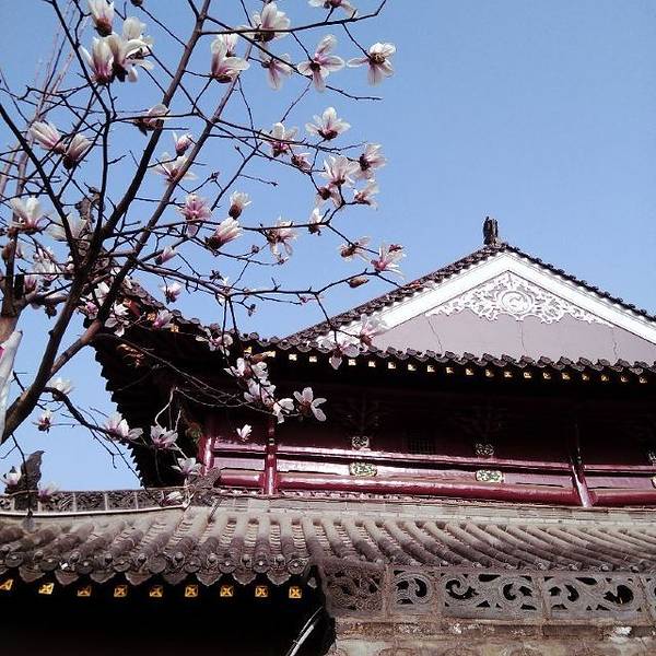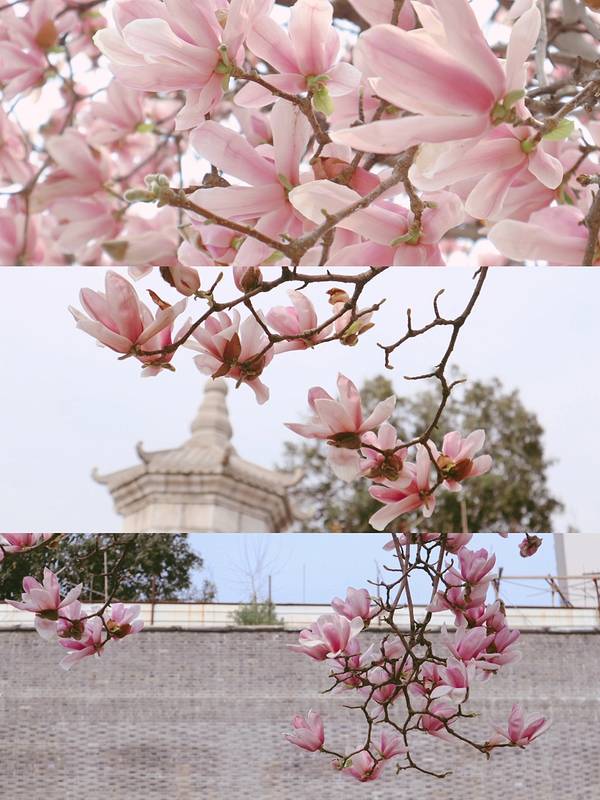 前一段时间被长春观的玉兰刷屏了,如玉盏般的葱葱玉兰映照着红墙黛瓦,蓬勃盎然的春意令人心向往之,于是选在阳春三月,赴一场花事之约。
