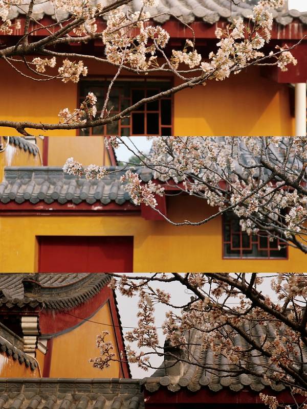 【P.S:最后那组是黄鹤楼旁边的龙华寺,寺庙不算大,隐匿于蛇山间,阳光透过樱花洒在明黄的砖墙上,一片岁月静好。不过这棵樱花树开得早,我去的时候已经快落了,看来想拍好看的照片只能等明年啦】