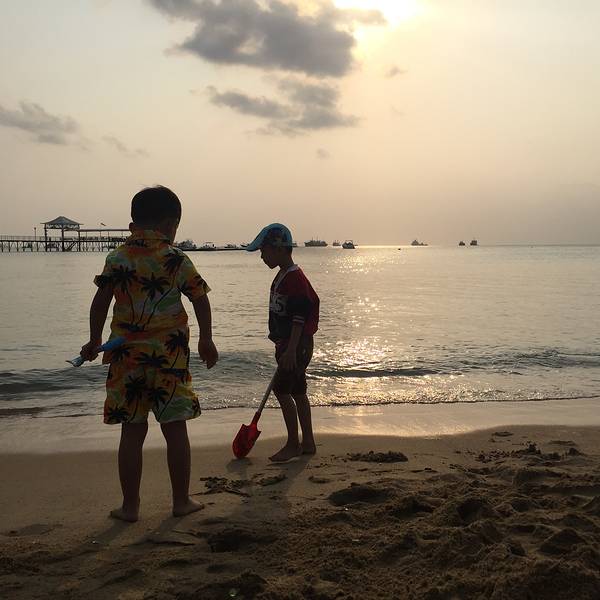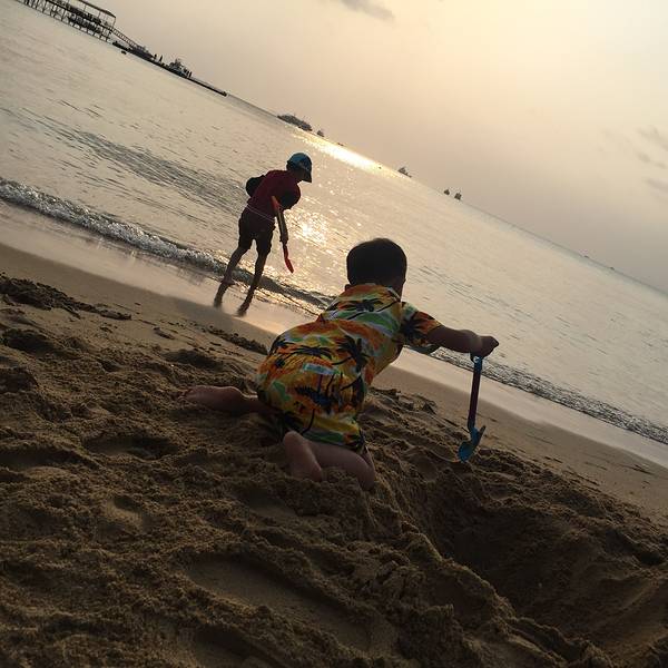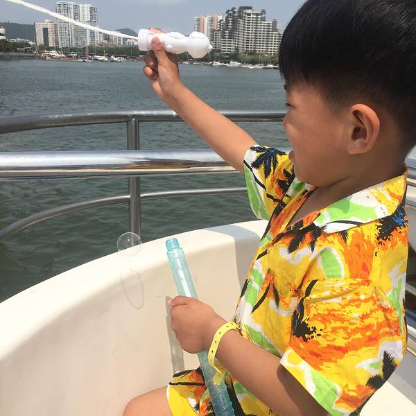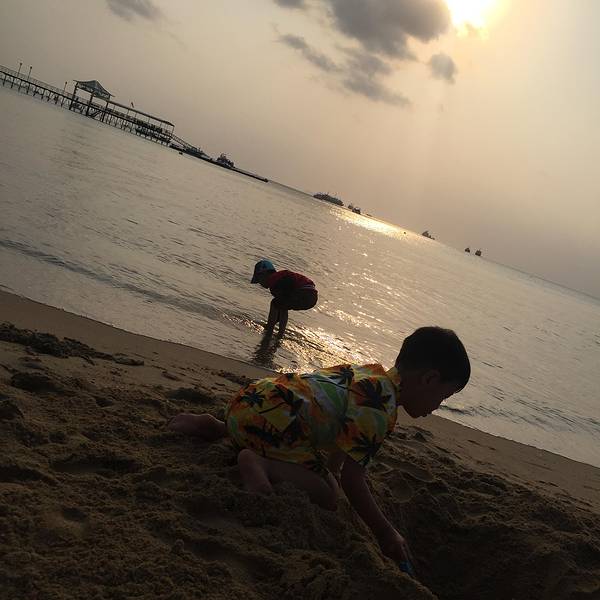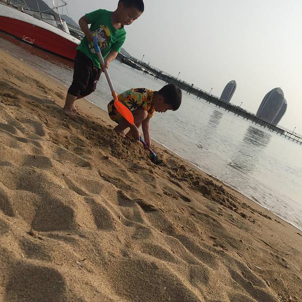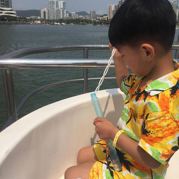 上艇之后,吃午饭〜 一看表,已经下午1点半了,吃完饭游艇返航,到了码头,上午接我们的车就在那里等我们,一直把我们送回了凤凰岛。这一天的出海体验真的很棒!让我心塞的事情是(我和老婆的墨镜都掉海里了,一个是豆豆钓上第一条鱼的时候,老婆弯腰拉鱼线,她的墨镜掉下去了)我的墨镜是钓一条非常大的鱼的时候(这条鱼竟然把我们的鱼钩都咬掉了,鱼线折了)也掉到海里去了。返航返航途中,泡泡依然不离手。回酒店休息一下,我们又出岛了,老婆去第一市场、步行街购物,买裙子。我带着豆豆去海边挖沙子,这回我就坐在边上看着他,豆豆的社交能力非常强大,在任何地方都能找到小朋友,并且愿意和人家合作。先挑好地方〜!开始挖沟。把沟和坑连起来,就为挖沙子,我特意给他买了铲子。晚上老婆带了椰子饭,水果,还有豆豆喜欢吃的一些零食,自己买了两条裙子。我出去买了点啤酒和烟。 晚上继续泡澡,喝酒,抽烟,最后看一眼三亚湾的夜景。因为明天我们就要离开这里了。 展开