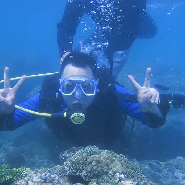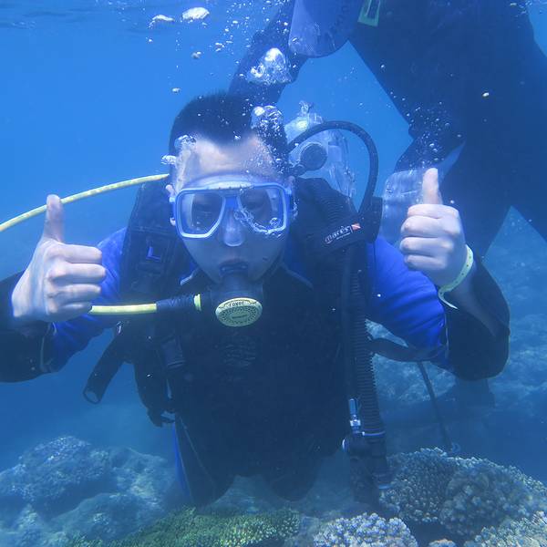 总体还不错,水底很美,鱼很多,适合初次体验潜水的人