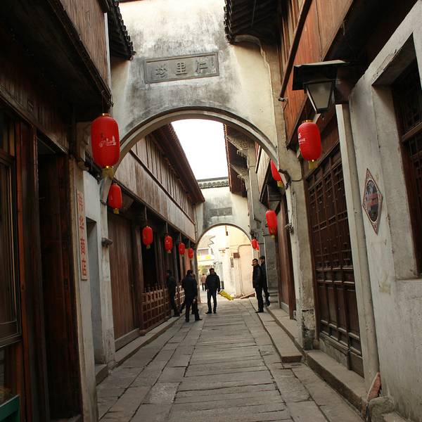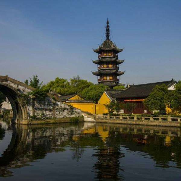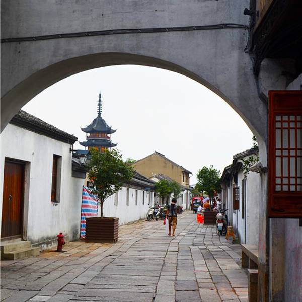 震泽,与太湖古称同名,位于江苏省和浙江省的交界处,距湖州的南浔古镇不过12公里,古有“吴头越尾”的称呼。白墙黑瓦的江南水乡建筑沿河排开,慈云寺塔静静倒映河中,比起同属苏州的周庄、同里,震泽没有那么多游客,可以安静地欣赏古镇的柔美。震泽还是篮球星姚明的故乡,不过位于打线弄3号的姚氏旧居并不对外开放。大运河支流頔塘河受东北-西南走向的小洲阻挡,分股成北边的运河风光带和南边的小河,小河两岸是古镇的主要游览区域。震泽汽车客运站在古镇的东边,所以一般游客都从东边进入古镇,你可以在震新南路和慈云路交界口的游客服务中心买票,如果只逛古镇,不参观小景点,是不需要买票的。在清代为纪念大禹治水而建造的禹迹桥这里很适合拍照,能把震泽标准照里的单拱石桥、慈云禅寺和塔一同纳入镜头。过桥,步入河北岸的寺庙,里面的慈云寺塔是原寺庙留存的建筑,始建于宋代,明代重建,塔顶的塔刹特别高。登上五层高的古塔,可俯看古镇,夕阳西下时景色好,“慈云夕照”是古镇一大胜景。宝塔街从慈云禅寺向西延伸,全长368米,是古镇精华的路段,街上铺着石板路,窄处两旁屋檐间仅留一线天空。街西边的清代师俭堂是古镇上值得一看的宅子,木雕、砖雕精美,气派的前后六进不仅有住房、店铺,还圈进了街道。第三进的二楼辟了个震泽历史人文民俗陈列馆,图文介绍震泽历史和名人。宅子东侧的鉏(锄)经园被假山、半亭、长廊点缀着,虽然小,但很精致。古镇的其他景点似乎乏善可陈,小河南岸的驳岸路东段有现代重建的文昌阁,登上三层阁楼可眺望禹迹桥、慈云禅寺和塔。沿驳岸路西行有展出当地菜肴的中国太湖农家菜文化展览馆,展出农具的江苏省农机具博物馆可看。若时间充裕,在河北岸继续西行,还有震泽公园、王锡阐纪念馆可以游览。宝塔街两侧的店铺售黑豆腐干、麦芽塌饼等当地美食,在街上的四碗茶楼能喝到当地招待新女婿或贵宾的的四道茶,从一道到第四道依次为水潽鸡蛋、饭糍茶、熏豆茶和绿茶,味道“先甜后咸再淡”。震泽自古蚕丝业发达,蚕丝被是特产,宝塔街和通往古镇的镇南新路上都有相关店铺,判断蚕丝被的真假好坏需要一定鉴别能力。在禹迹桥边上和师俭堂前的大顺米行前都有游船码头,可付费坐船,一艘船可坐4-6人。古镇内没有住宿,古镇外倒有不少,不过由于从周边城市出发到震泽,当天就能往返,选择在此住宿的游客很少。