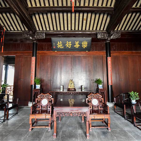 很快,这条几百米的正街就走到了尽头,再往前就是一座桥,桥那头一片空旷;左手边有着北街的标识,望上去是一条长长的古老窄巷;右手边是一些居民的住宅,走了几步,有一处大门紧闭的杨氏南宅,几个本地的小朋友做着游戏。于是,我们走去了北街,两边还住着原来的住户,透过窗户和门,看到屋里的摆设,觉得多是以老人为主。突然就觉得有些抱歉,易地而处,如果我是这里的住户,每日里有参观的陌生人来来往往,那个滋味不好受。果然,就看到挂着铁匠铺牌匾的那户人家的木门上,拿粉笔写着5个字,请不要拍我!个中心情,可见一斑。所以,以后再去的亲们,在参观北街时可以尽量安静一些,而且,这样的老街,正是安安静静地慢慢走走,更有味道些。再往前就是榜眼府和杨氏孝坊这两处需要验票的景点了。巷子虽窄,榜眼府的面积可是不小。第一进,轿厅;第二进,正厅(男主人会客室);第三进,前楼厅,女主人会客室;第四进,后楼厅,合家喜庆聚餐之处;最后,是后花园。一般大宅子该有的房间,一应俱全。后花园里也是,亭台楼阁,假山石舫,应有尽有。杨氏孝坊。个人以为,若是春和景明,顺道路过,随意在恬庄老街走走,是很惬意的;但若特地驱车几十公里甚至上百公里来此,可能就会有些失望了。票价:恬庄古街、河阳山歌馆、永庆寺是张家港凤凰山景区的三大景点。票价分别为30元、30元、30元;购买联票的价格为80元。办理2016年苏州惠民休闲年卡可以免费参观。