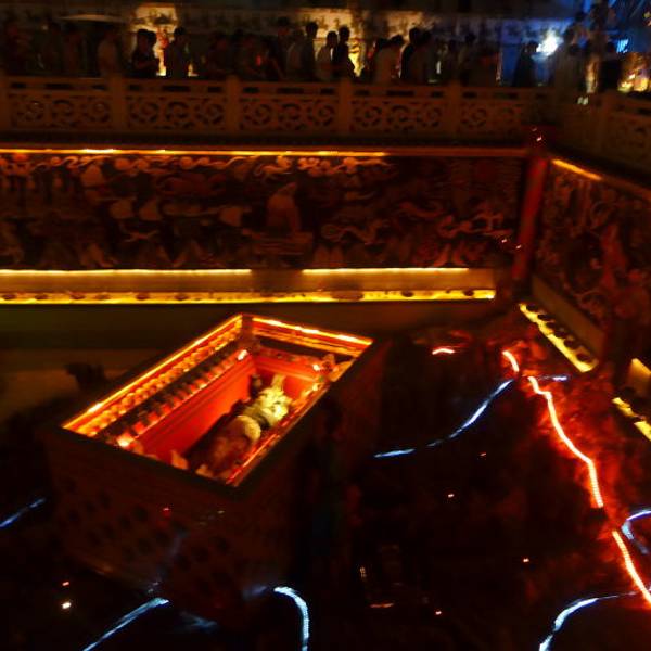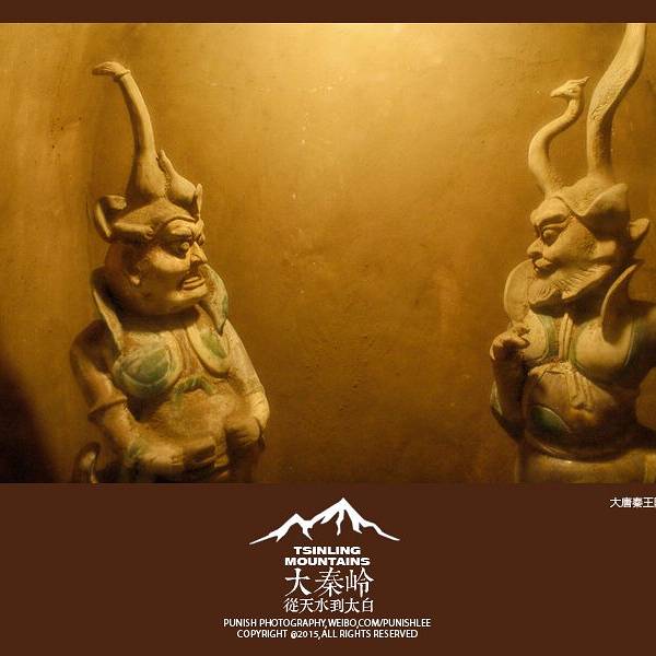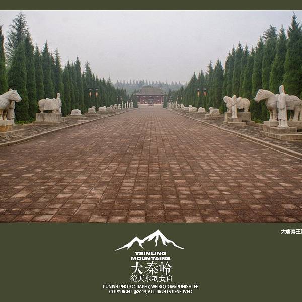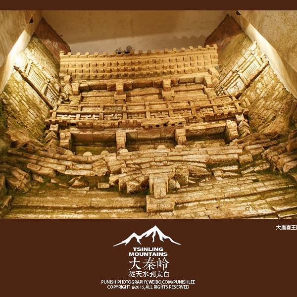 大唐秦王陵由山门、神道、献殿、祀殿、合两座地宫组成。在神道上,陈列着按皇帝生前出行宫廷仪仗的唐代石雕15组34尊。在两座地宫殿中,有用青砖仿木雕刻而成,保存完整的世界罕见全国唯一的砖雕飞檐古建端楼,做工精细,人物造型逼真。 有用青砖砌墙并券的八边形穹窿顶;有栩栩如生墓道两侧18幅乐伎图;有唐代珍贵的胡人马乐俑;有精美的砖雕“十二生肖图”“八人抬轿图”“二人抬轿”“汉人牵马图”“胡人牵驼图”。有按北斗七星位置挑开青砖形成勺状“地面天象图”;有埃及“金字塔”式的人面兽身镇墓兽;还有带有神秘色彩的千年石函……。极具观赏和研究价值,在唐代帝王陵寝中极为罕见。