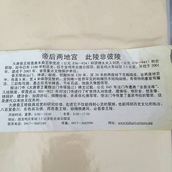 大唐秦王陵是陕西省重点文物保护单位,大唐秦王陵博物馆位于陕西宝鸡市北坡公园顶,是展示唐末秦王李茂贞及夫人刘氏“同茔不同穴”的合葬陵寝为样板的专题博物馆。