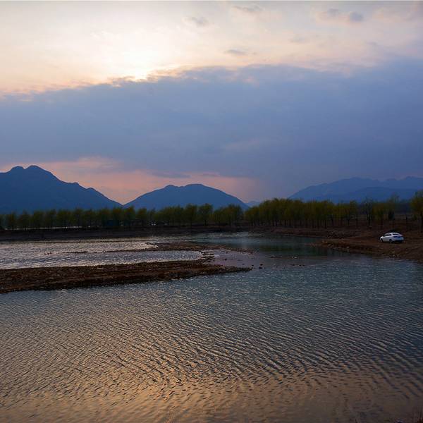 将车停于路边,随手都是风景!滩涂的景区很不错夕阳西下,再次路过龙门湖,山水相映,绿柳飘扬,春光景致倒也很漂亮。