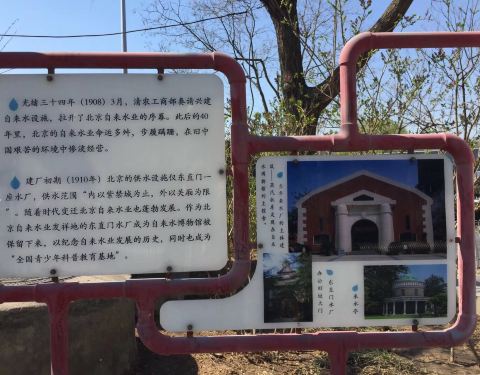 在东直门外,介绍北京自来水的发展过程,又一个旧的水塔特别醒目,