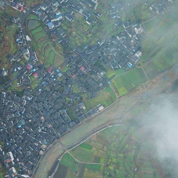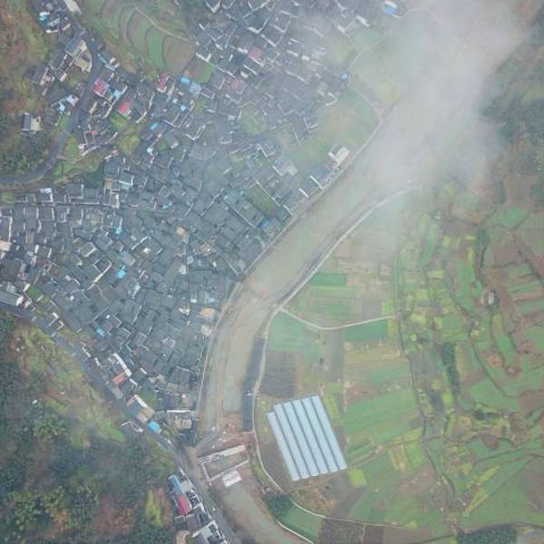 ...是是一幅太極的陰陽圖,一邊是房屋,一邊是農田,被一條彎彎和河流恰好分開,感慨大自然的鬼斧神工啊太極湖村,由高處往下看,真是是一幅太極的陰陽圖,一邊是房屋,一邊是農田,被一條彎彎和河流恰好分開,感慨大自然的鬼斧神工啊