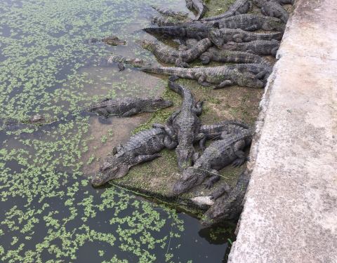 里面的鳄鱼真多,还有两条鳄鱼嘴咬嘴打架,感觉再加点护栏会更好。还看到了两只猴子,很好玩