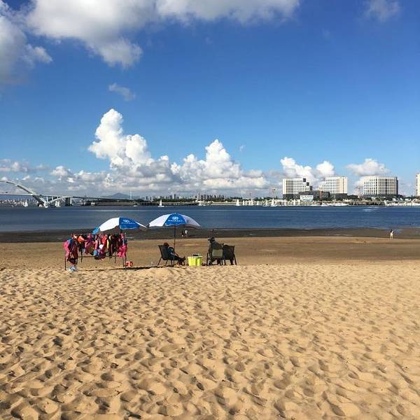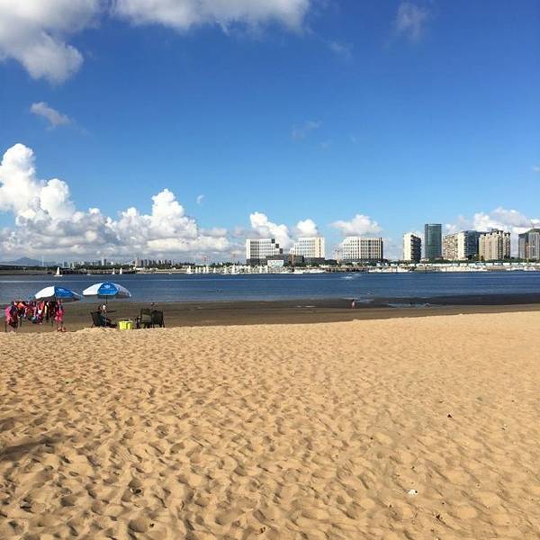 靠近海边,沙滩很干净,冰饮店,自助售水机