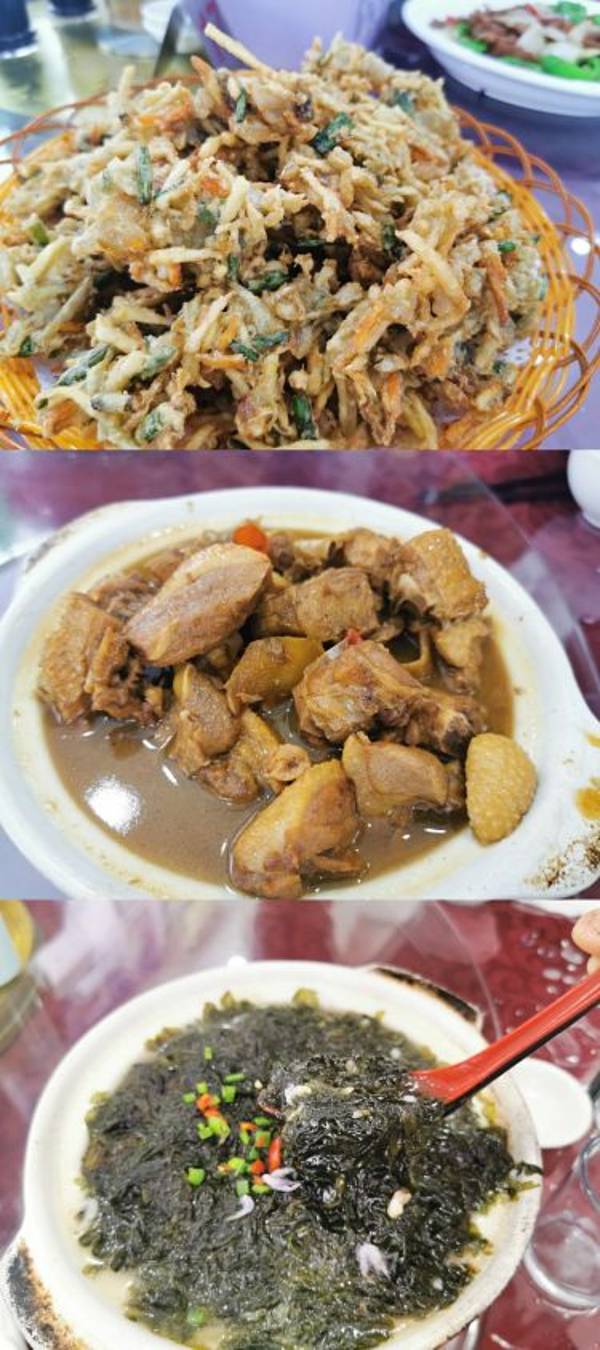 小嶝岛有一片海湾,孩子们在沙滩上挖沙子,抓寄居蟹,玩的很开心,到了饭点都不愿走。中午吃饭是在阿峰饭店,离青春旅社不远,走路一分钟不到。老板很细心,给我们安排了小嶝岛特色的各种海味,厨师做菜味道也很不错,海的味道,小嶝岛知道呀。小管超级新鲜,还带满满的膏。紫菜煲是用的头水紫菜,太好吃了。凉拌嫩海带太惊艳了,跟我们平时拌的海带丝不一样,这个海带是嫩的薄的,好好吃。孩子平时在家不怎么吃的菜,在这里都吃个不停。