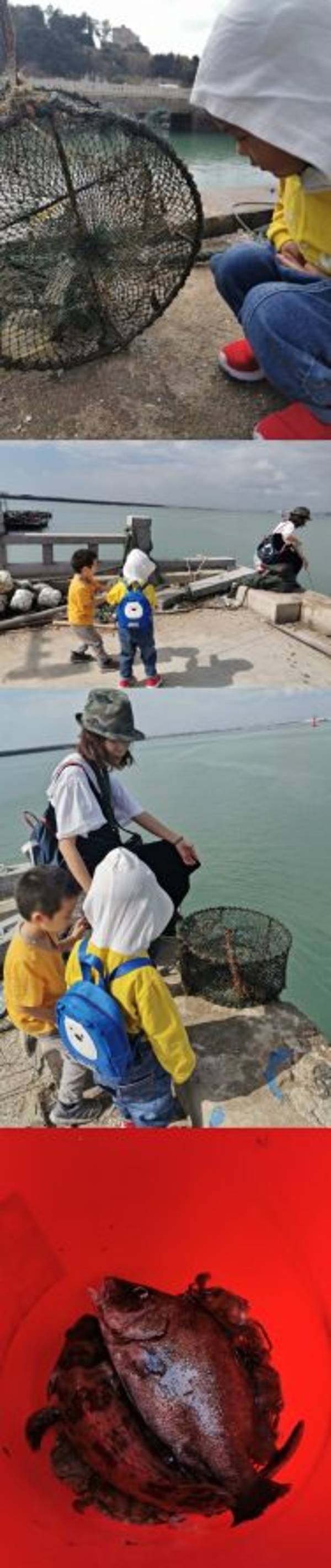 我选了二楼靠南面的房间,很明亮,放好行李我们就赶紧去玩海啦。孩子更喜欢去沙滩玩,我就没有出海打鱼,改而走小嶝环岛线路,大家先到码头去拉渔网,孩子们超开心,每个笼子拉上来,“哇!有螃蟹!”“哇!有鱼呀!”他们从来没有玩过这些,我们大人也是,都觉得很好玩。