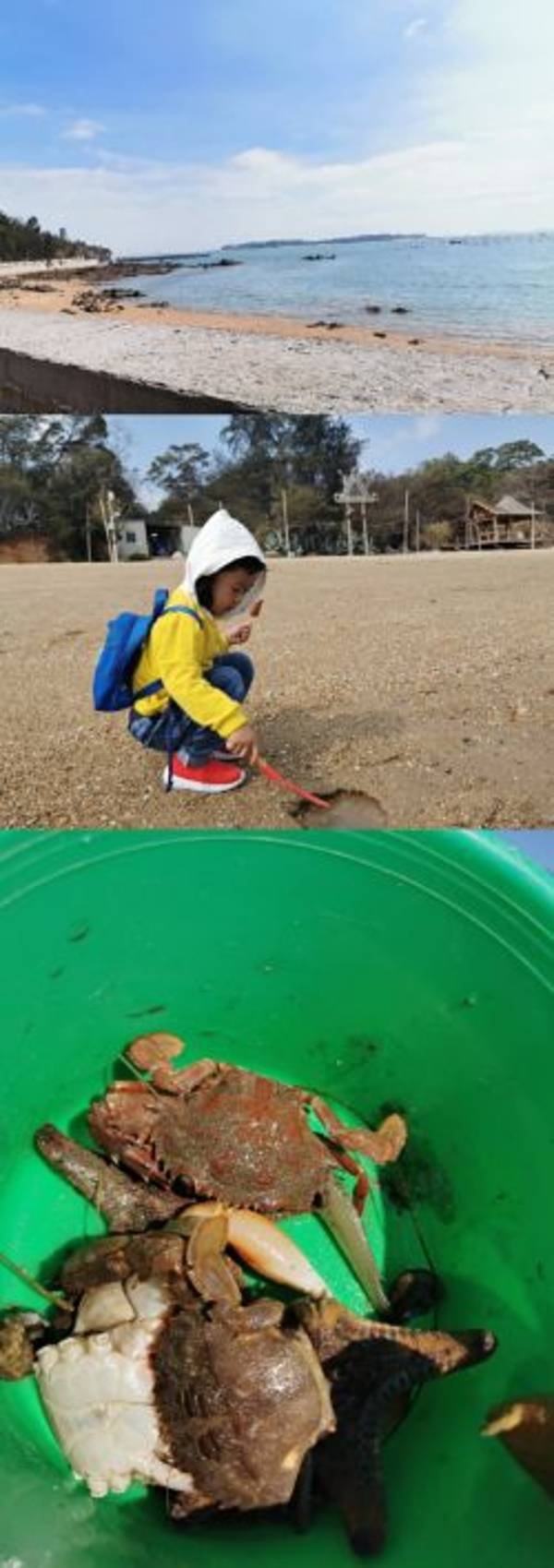 饭后游览小嶝岛,看看对面的金门岛。出岛后乘车去帆船体验,真心觉得带孩子去不错从市区接游客,沿着环岛路走海底隧道到达大嶝岛,下车乘电瓶车到小嶝岛,有几位阿姨带领着我们换雨靴,拿小桶铲子手套,走向退潮的海边,翻石头找螃蟹,螃蟹不算少,个头不大,还有海星呢。一定要做好防晒,全副...从市区接游客,沿着环岛路走海底隧道到达大嶝岛,下车乘电瓶车到小嶝岛,有几位阿姨带领着我们换雨靴,拿小桶铲子手套,走向退潮的海边,翻石头找螃蟹,螃蟹不算少,个头不大,还有海星呢。一定要做好防晒,全副武装那种。心不要急,让孩子来体验这样的活动。捡了螃蟹后入村民的家吃午饭,捡的螃蟹就是其中一道菜,很鲜。饭后游览小嶝岛,看看对面的金门岛。出岛后乘车去帆船体验,真心觉得带孩子去不错。路程远,这样玩比较方便,车接车送。 展开