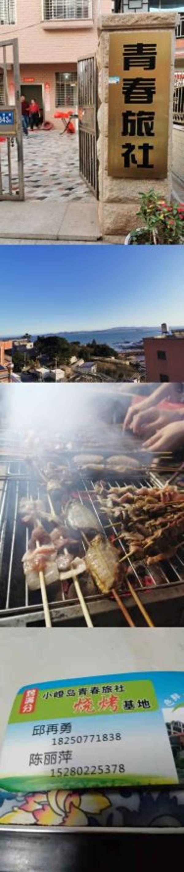 青春旅社在小嶝岛的半山腰,是一栋自家的小洋楼,有5层,楼顶可以看到海,风景很好,楼下有个小院子,可以在院子里烧烤呀泡茶呀,很舒服。