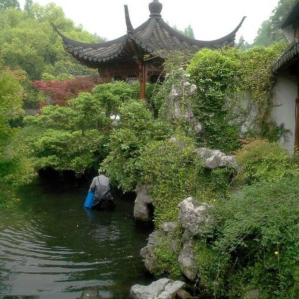 当时是围着西湖随便转的,偶然走进了郭庄,还不错,去的时候还没完全修好,很多假山,庭院。