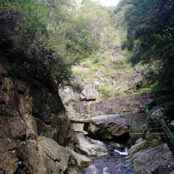 景区位置有点偏,山路比较远,交通不是很方便,自己开车去比较好,停车场收费大爷能帮忙联系送客小面包。景区有点小,来回一个半小时左右,以看瀑布为主,雨季去好看,最好下过雨去,瀑布比较壮观。门口只有汤面炒糕挺好吃的,价格也不贵,茶叶蛋蒸了又蒸不好吃还有点小贵。