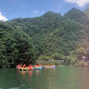 漂流的风景不错,带小孩可以玩下,不惊险,基本上不怎么会湿身。孩子玩的开心就行停车场要好好修整了。漂流的风景不错,带小孩可以玩下,不惊险,基本上不怎么会湿身。只有在终点时可以在浅水区戏水一下。孩子玩的开心就行