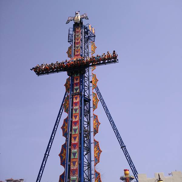 5.高空飞翔,推荐指数5星,刺激指数4星半,其实也算飞椅的升级版,但是胜在够高,虽然风大很冷,但是可以看到园区全景,和外围的大海,所以体验很不错