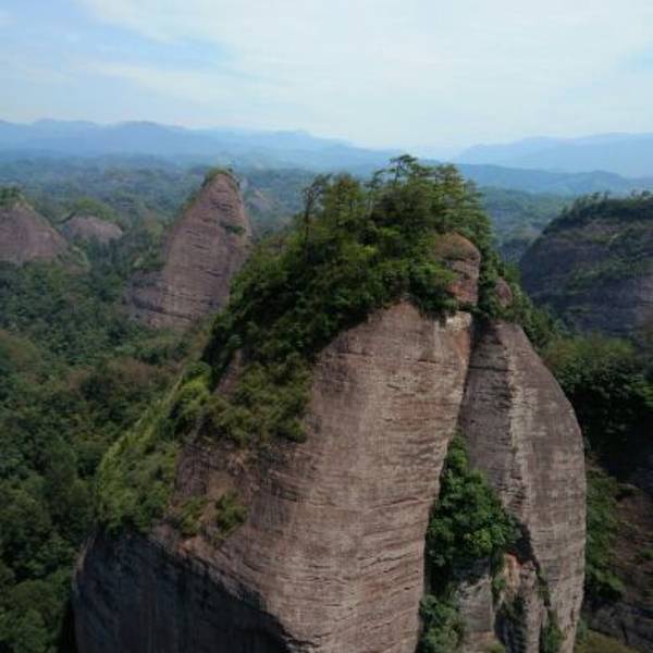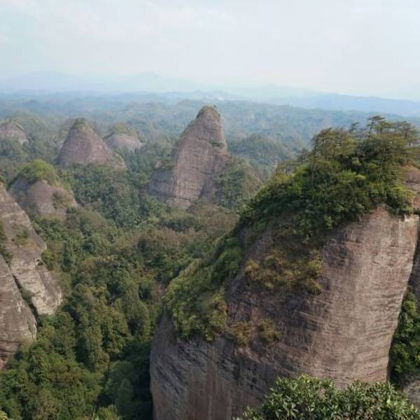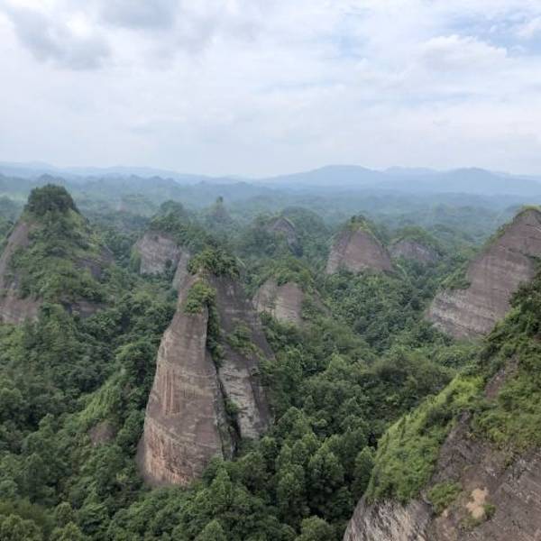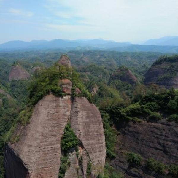 湖南怀化通道的万佛山,是丹霞峰林地貌,一座座红色的山峰连绵起伏,山不是很高,爬上万佛金顶不会很...