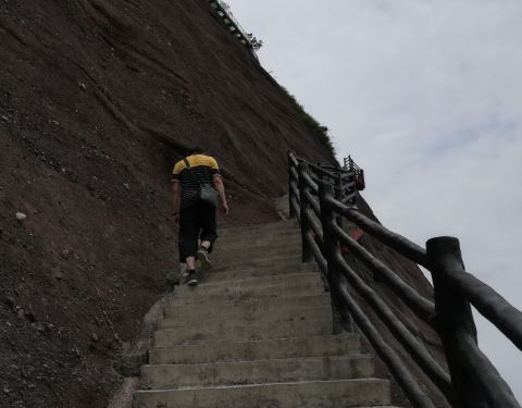 看上去非常的险峻,一路前行,周围的景色非常美,空气很清新,像走入一个天然的氧吧一样,一路从山脚下上来