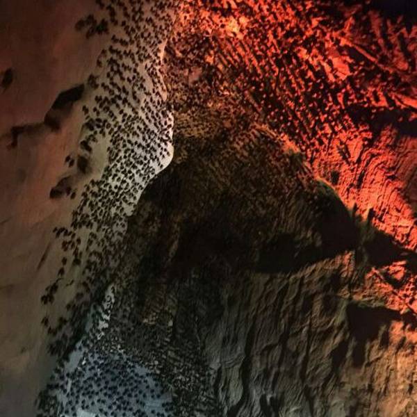 ...只有我和老公两人,景区服务讲解都不错,洞内景观也还行,洞壁上满是蝙蝠,有密集恐惧症的人会很难受