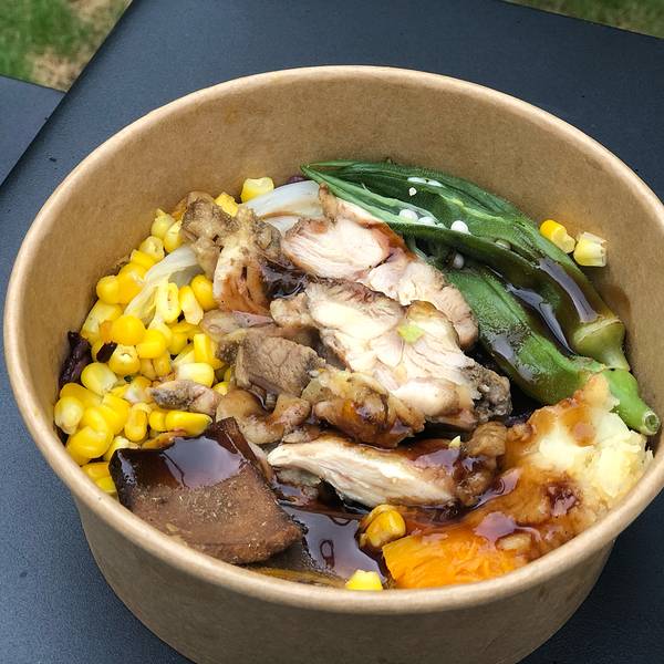米饭是紫米饭,这个是主食相对更有饱腹感,尤其是饿了的时候吃特好吃啊。鸡肉也不错,嫩嫩的,酱汁好吃。