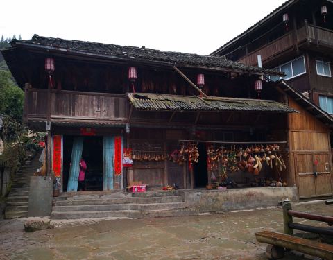 侗寨大门和里面风景。侗寨真的什么都没有,实在大大对不起我们昨晚的折腾。