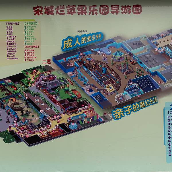 烂苹果乐园位于杭州乐园的对面,是个超大的室内亲子乐园,各种布景充满童话色彩。南瓜车、巨型玩偶,曾经童年时期的梦想宝物在这都找的到。烂苹果乐园一共三层,有魔法丛林、糖果小镇、荒诞小镇、水果部落、深海广场、水母广场和黄金海岸几个区域。