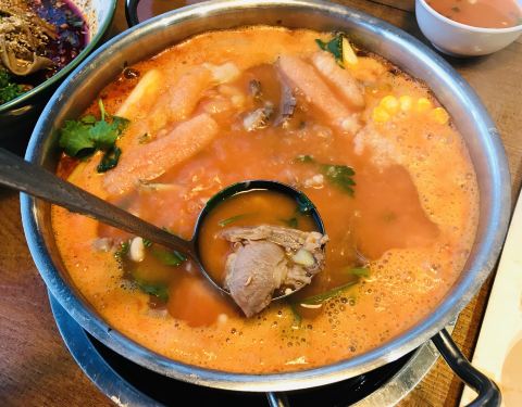 在家的最后一顿晚餐打卡泸州非物质文化遗产-钟翘脚。江边悬崖上的小楼有着绝佳的视野,看着江景吃着美食真的很满足。牛肉汤锅,冷串串,麻辣鸡,桂花包,来自古蔺大山的美味让一家人都赞不绝口。家长里短间,窗外...