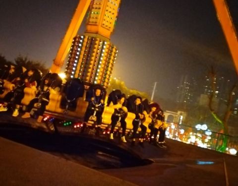 简直不要太刺激,夜景很美。泸州欢迎你。 摇摆伞应该是最刺激的 ,360度无死角旋转。太刺激了。过山车比较快,我还没反应过来