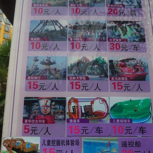 游乐场本身价格便宜,而且游乐场现在有活动通票是100元,团体票还更优惠,具体项目的价格详见价目表!个人推荐太空漫步,海盗船,还可以划船,旋转木马很豪华很新,可以拍出偶像剧里的感觉!(^_^) 展开