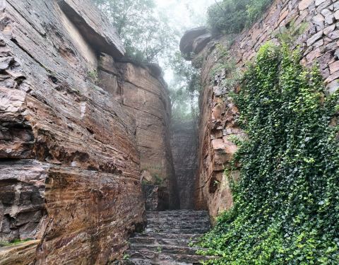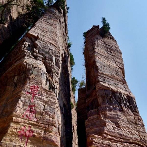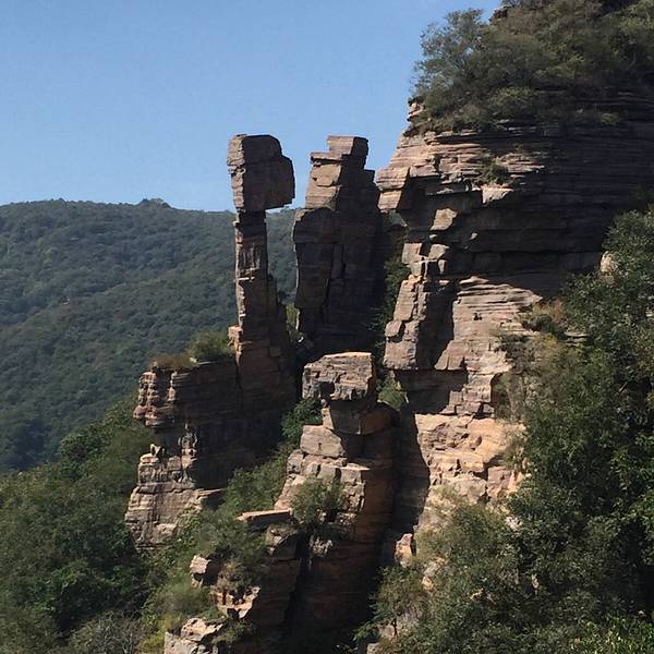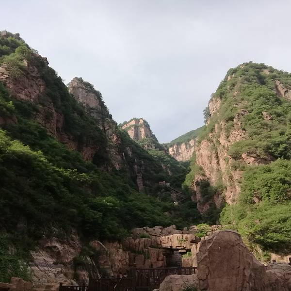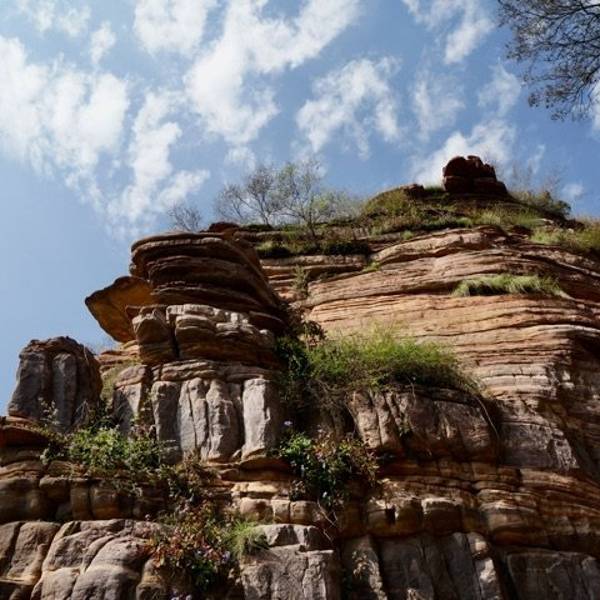 金骆驼 但是里面的风景绝对不逊色于龙潭大峡谷,而且这里除了优美的自然景观,还有历史底蕴也很强烈,而且还...黛眉山就在洛阳市的新安县,名气虽然没有龙潭大峡谷的大,但是里面的风景绝对不逊色于龙潭大峡谷,而且这里除了优美的自然景观,还有历史底蕴也很强烈,而且还能追溯到商周时期,但是经过历史的洗礼已经看不出多...黛眉山就在洛阳市的新安县,名气虽然没有龙潭大峡谷的大,但是里面的风景绝对不逊色于龙潭大峡谷,而且这里除了优美的自然景观,还有历史底蕴也很强烈,而且还能追溯到商周时期,但是经过历史的洗礼已经看不出多少人文历史气息了。去黛眉山最理智的建议就是报个一日团,因为山路比较崎岖,对车技很考验,如果第一次去这里不懂路况,会很危险的原因吧,所以景区是禁止自驾进入的。一路上虽然道路被修的很好,但是真正体会到了什么叫山路十八弯,历经几个小时后才到,虽然坐车很累了,但是一下车就能感受到,这里的空气完全不一样,可想而知负离子的含量有多高,从售票处进去,走一段就看见从山上流下来的“泉水”,太清澈了,感觉这里的水喝一口都是甜的,河水周围都是怪石嶙峋,给人一种非常舒服的感觉,山上的路很好走,可是也有的地方那斜坡也是相当陡峭的,爬到山顶筋疲力尽,但是路上可见的是耸立的绝壁,这风景绝对的原生态,悬崖边的石头很多都是立在悬崖边上的,不禁想象不出来,这里到底发生了什么事情,石头会互相之间这么依靠着,山上还有一片草地,这是在是太出乎意料了,草地上长满了各种小花,五颜六色的,这都觉得是人工养在公园里面的一样。非常漂亮。