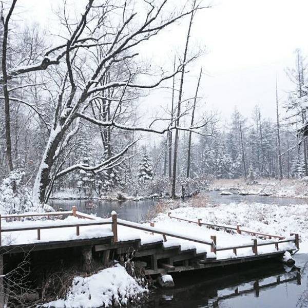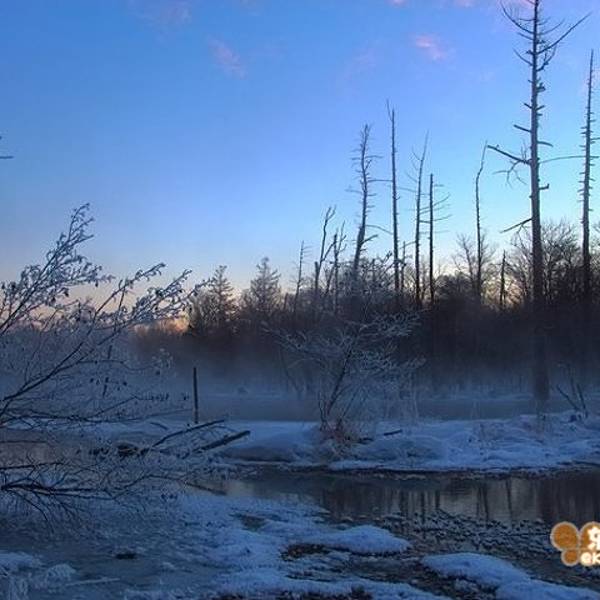 魔界当气温低达零下20度时,河边雾气很大这里就会出现雾凇和冰挂,氤氲缭绕,如仙境一般。清晨,水面的枯树在浓浓的雾霭中若隐若现,呈现出种种令人惊异的魔幻般甚是有点诡异的景致。当我只看到桥上雾凇的时候一路奔跑,近乎几次滑到。就是为了快一点再快一点看到心心念念的魔界奇景。