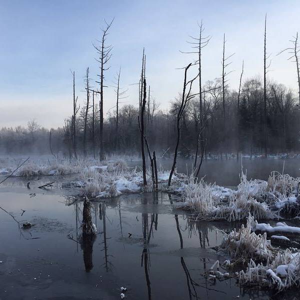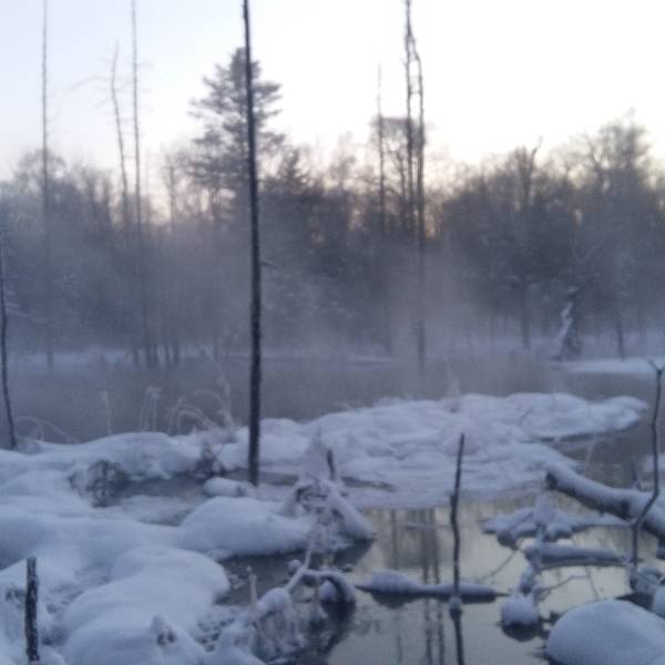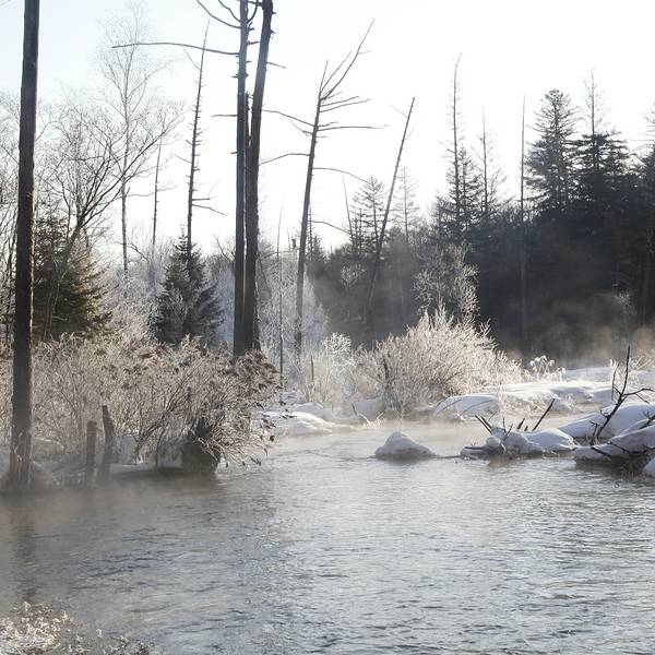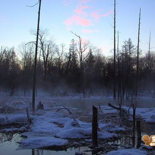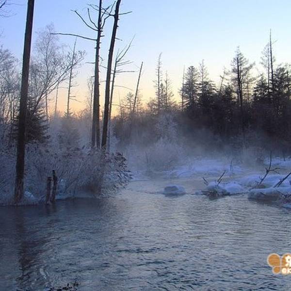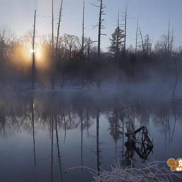 因为长白山此地多电站,而仅魔界附近就建有红丰、金丰和奶头河三个不同规模的发电站。因此从长白山流泻而下的奶头河河水,终年不结冰。每到冬季,尤其凌晨时分,因河水的高温与低温的空气碰撞。这里就会出现雾凇和冰挂。随着日出,天逐渐亮起来,雾气弥漫,氤氲缭绕,宛若置身仙境一般。而水面上,岸上,或直立,或倒下的枯树,带着雾松,在浓浓的雾霭中若隐若现,更透着一股魔幻般的诡异。