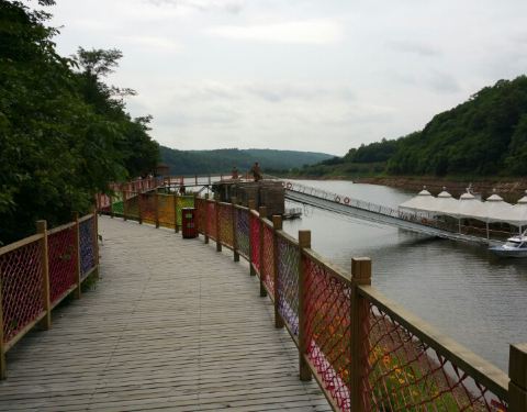 从长白山的二道白河去安图的路上顺路观光,景区没什么景点,还好正赶上当地赏花的好时节从长白山的二道白河去安图的路上顺路观光,景区没什么景点,还好正赶上当地赏花的好时节。听人说坐游船100元/位是亏大了,上去15分钟就下来了也没看到什么有趣的东西