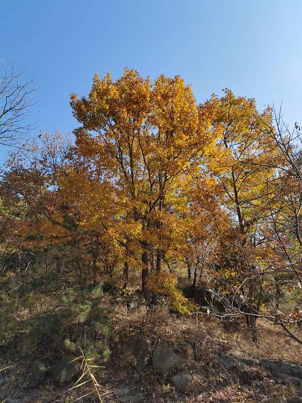 上去之后是七星湖 拍照以后 可以从右...特意来灵慧山拍红叶的 不过略略有点小失望