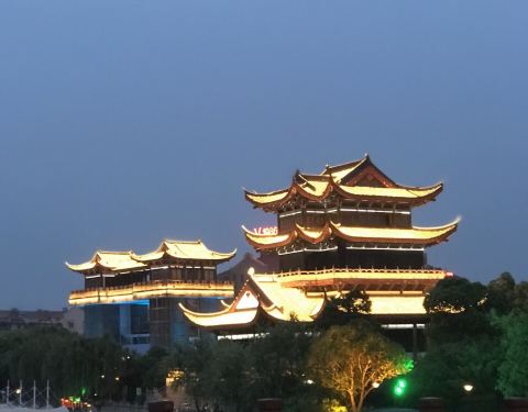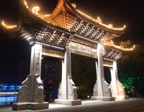 晚上信步夜游项王公园,华灯初上,古城夜景美!值得一游!