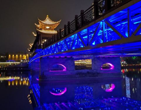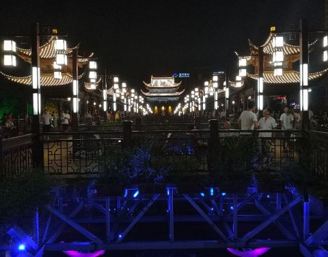 夜景很美!夏天在廊桥上喝茶乘风凉!