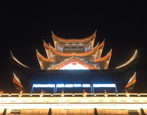 夜景很不错,一个人散步像穿越了古城