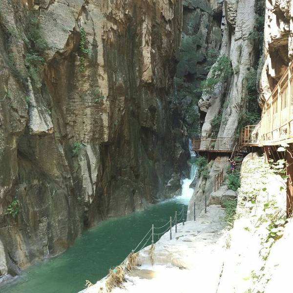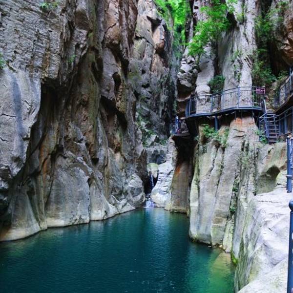 神龙湾风景区被绝壁悬崖环抱,居东西走向的峡谷深处,最高海拔2000米,特殊的局部生态造就了景区沟壑纵横、绝壁对峙、怪石嶙峋,植被茂盛的自然景观。全村被绝壁悬崖环抱,春秋碧水蓝天,盛夏多有云雾缭绕,隆冬群峰披素,沟底流水潺潺,特产大红袍花椒、柿子、葡萄等。神龙湾天瀑峡风景区是写生基地、太行山大峡谷的源头。天瀑峡地处太行山东南部,沟壑纵横,绝壁对峙,植被茂盛。向峡谷深处走15分钟左右,便可看到有2000年树龄的红豆杉。不远处的河滩中央,矗立着巨大的飞来石,顶上一棵小树傲然耸立。半小时后,便到达井底大瀑布——玉龙瀑。神秘的岩石、高悬的瀑布、清冽的激流,仿佛武侠电影的天然布景。