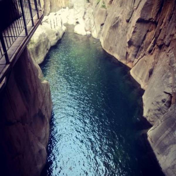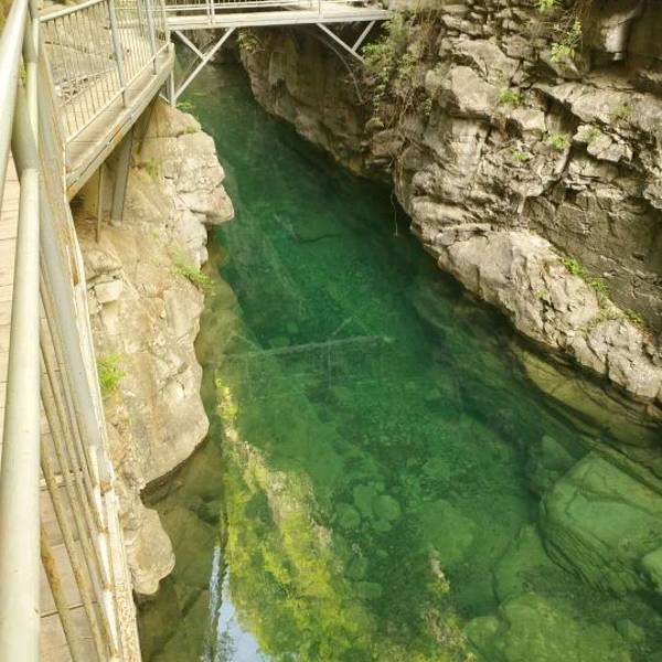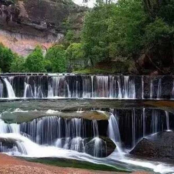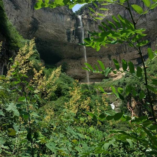 神龙湾风景区被绝壁悬崖环抱,特殊的局部生态造就了景区沟壑纵横、绝壁对峙,植被茂盛的自然景观。神秘的岩石、高悬的瀑布、清冽的激流,仿佛武侠电影的天然布景。
