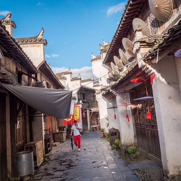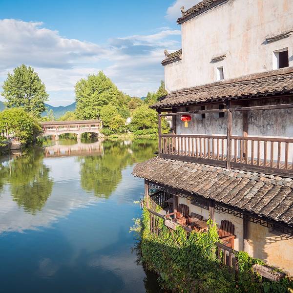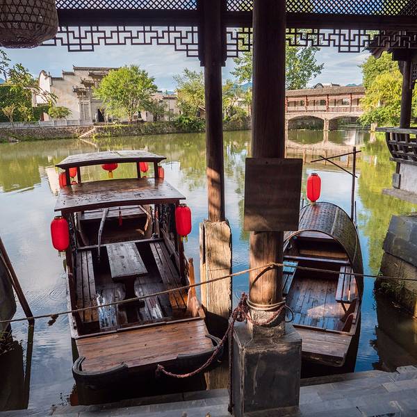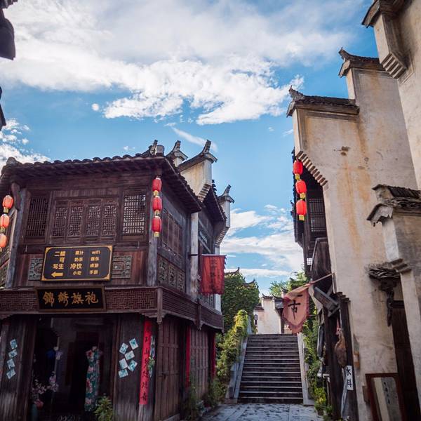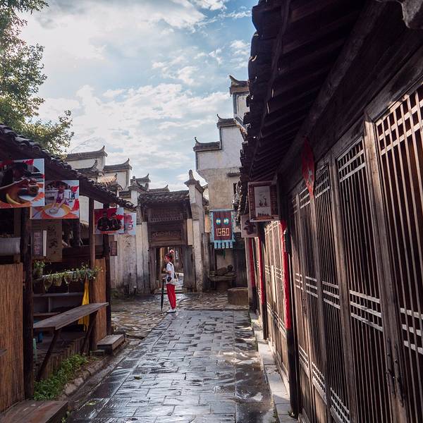 一条小河绕着景区潺潺流过,如果你闭上眼睛,听流过的水声,你会误以为这里正在下着雨。这里有错落有致的徽派老房子、古朴沧桑的老街、原汁原味的徽菜、美轮美奂的景点,令人遐想万千。