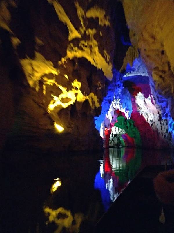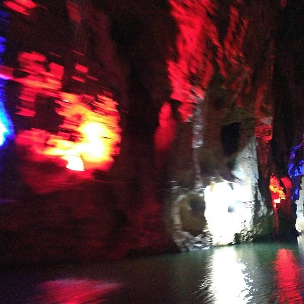 游船,洞里的温度很低,很不错,幺妹的歌唱得让人回味