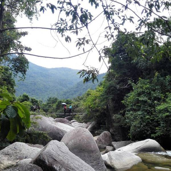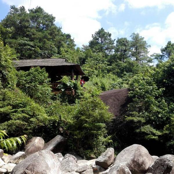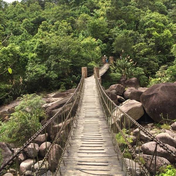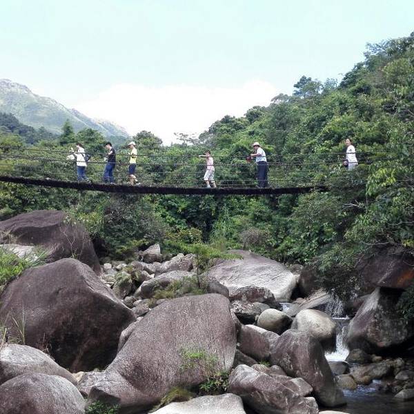 我们从湛江导航东兴屏峰雨林公园,到了屏峰雨林公园的石碑处还以为到了景点,车子开进很远都没见什么...我们从湛江导航东兴屏峰雨林公园,到了屏峰雨林公园的石碑处还以为到了景点,车子开进很远都没见什么,导航显示已到,后来停车问下路边的小卖部才知道还要向山上开很久,要经过红石谷才到石门谷的景点入口,要提...我们从湛江导航东兴屏峰雨林公园,到了屏峰雨林公园的石碑处还以为到了景点,车子开进很远都没见什么,导航显示已到,后来停车问下路边的小卖部才知道还要向山上开很久,要经过红石谷才到石门谷的景点入口,要提前在网上买票,我们带着小孩不适合漂流,就进石门谷爬山,大概的有2至3公里长,往上爬要经过3条吊桥,沿路有乱石,多处小的瀑布,挺原始的,景点人不多,很清静,过第三条吊桥后就看山顶最后一个瀑布,就原路返回。 展开