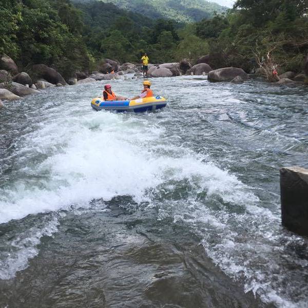 屏峰雨林公园是东兴一处天然氧吧,在这里既可欣赏到层层叠叠的瀑布之景,也可体验惊险刺激的漂流运动。景区主要由红石谷漂流和石门谷观光两部分组成,两部分的游玩时间都各在2小时左右。进入景区大门后,便可看到这里郁郁葱葱的植被,感受到空气的湿润与清新。首先来到的便是漂流区,主要有逍遥漂和勇士漂两种。相比之下,勇士漂更惊险刺激,全长约4.8公里,总落差约190米,河道隐秘在绿色的植被中,坐在皮筏上经历全程大大小小的落差,非常刺激。逍遥漂则多了几分宁静悠闲,可谓老少皆宜,全长约3.8公里。漂流结束后,便可继续去到石门谷游览,沿着森林之中的步道悠悠地走着,沿途绿植环绕,瀑布层层叠叠,于壮观之中带着一丝秀美,给人非常惬意的体验。
