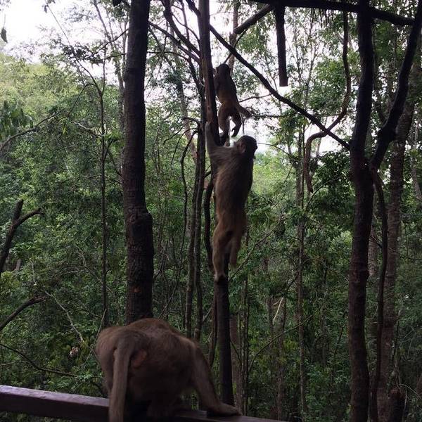 不过晚上换洗的衣裳不提议晾晒在小木屋的阳台上哦,万一一只黑乎乎的长臂猿悄然无声的捎走了它怎么办?更滑稽的是,万一这只长臂猿穿上你的衣裳穿梭在丛林里,会不会更令你害羞?