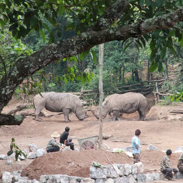 冒险从平静的清晨已经开始,当我见到两只白色犀牛的时候,顿时一惊。自1933年普洱太阳河流域的最后两头犀牛被捕杀以来,这片土地上就再也没有它们的身影。然而在此之前,这里可是犀牛天堂呀。为了让犀牛重现云南,普洱太阳河国家公园从南非引进了7头白色犀牛,这使得这片纯净的土地上变得更为丰富而闹腾。相信在若干年以后,这里的犀牛将会和野象群一样,成为整个原始森林的骄傲和自豪。