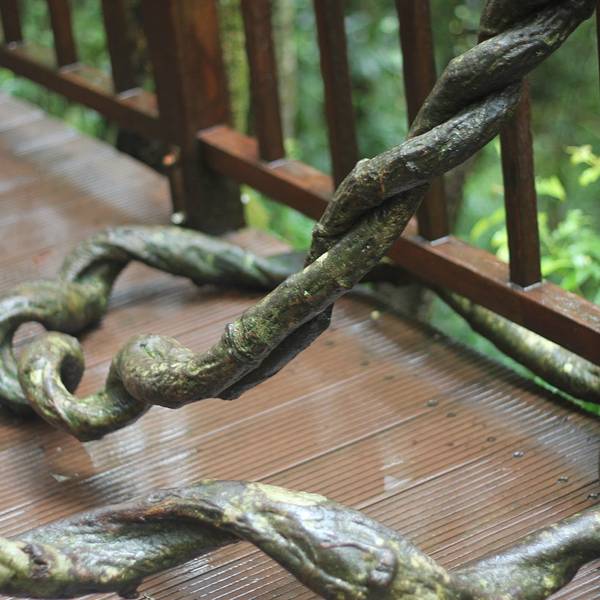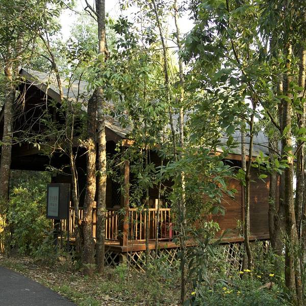 不过听说巨松鼠也喜欢来林中小屋凑热闹,经常跳跃在各个树枝之间寻找对象。我想正是庄园依山势,顺脉络,精挑优质木材搭建小木屋,细拣船木老料打造家具,使得每一件什物,每一处景致匠心独运,野美别致。才会令这些不害臊的小动物们常常走动在附近,在它们眼里,这些小木屋可能就跟千年树王一样,就是长的有点儿奇怪罢了。实际上,它还是一棵树。
